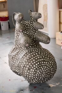 IB Ein weiteres starkes Motiv in Finks Werk sind Tiere. Die kommen als Zeichnung vor, als Objekt, in Performances. Welchen Anteil hat das Motiv Tiere für dich in seinem Werk?